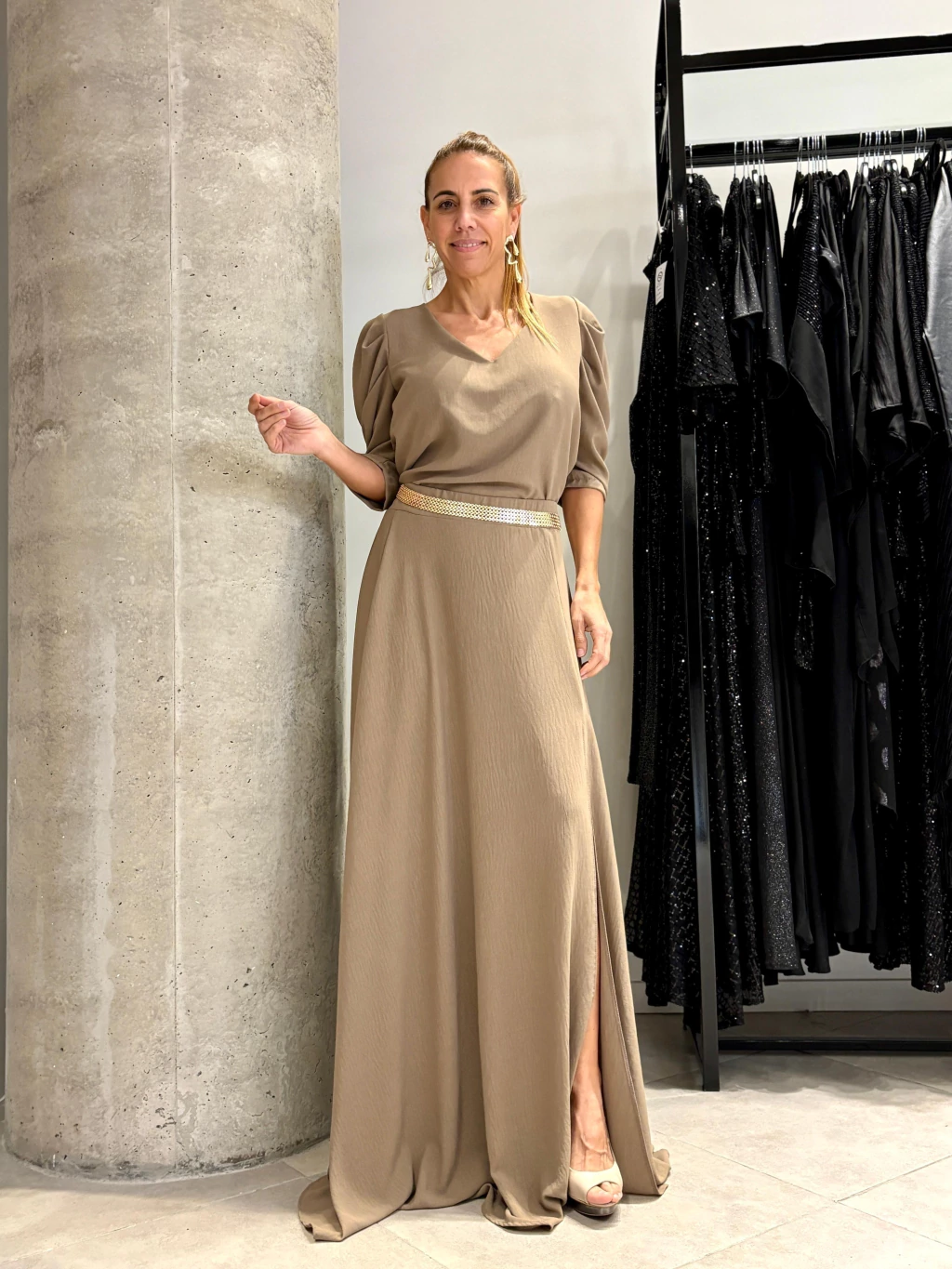 Largo 45cm , Busto ajustable de 90 a 102cm, la Cintura se regula con un lazo y cubre hasta 108cm.